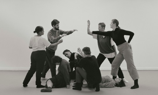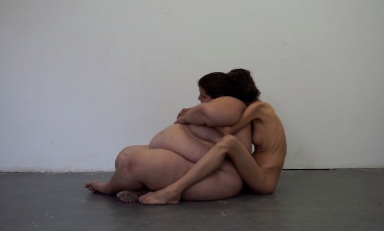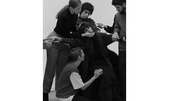 Partly extracted from the video footage, the images were processed and cleansed of superfluous details to refine the manifestations of beauty and love embedded in it. At times, the medical instruments resemble human beings making gestures. In this equipment-rich setting, an intimate interpersonal relationship is forged with the medical staff, an encounter between a woman who puts her body in the hands of another, and an individual who extends a supporting hand. In the action performed at the museum, eight men and women supported Cohen’s body, and were photographed only after the artist left their grip and took her place behind the camera. The resulting images distill the medical procedure into moments of grace and gestures of generosity.
