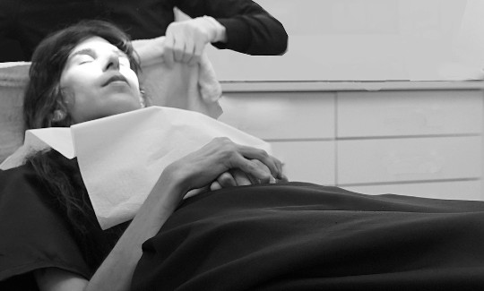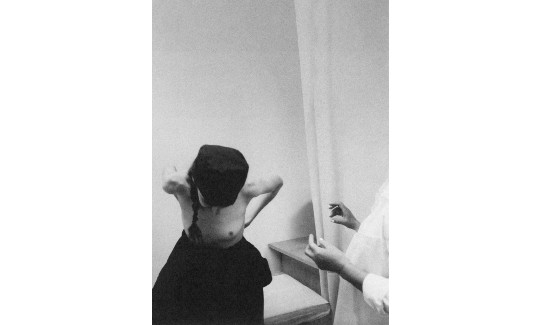 Over the past year, Chen Cohen photographed her medical routine in various clinics and at the Bnei Zion Medical Center in Haifa. She focused on the medical instruments and her encounters with the medical staff - meetings intended to treat the body, which were full of tenderness and compassion, healing the soul, too. She did not document the treatments from a seemingly objective position, or one that emphasizes the difficulty of being the object of a medical examination, but rather performed for the camera. She came to the check-ups as a healing shaman, always dressed in the same long black dress, which is contrasted with the white space. The camera she installed in the clinic transformed the event into an artistic act addressing beauty and love.